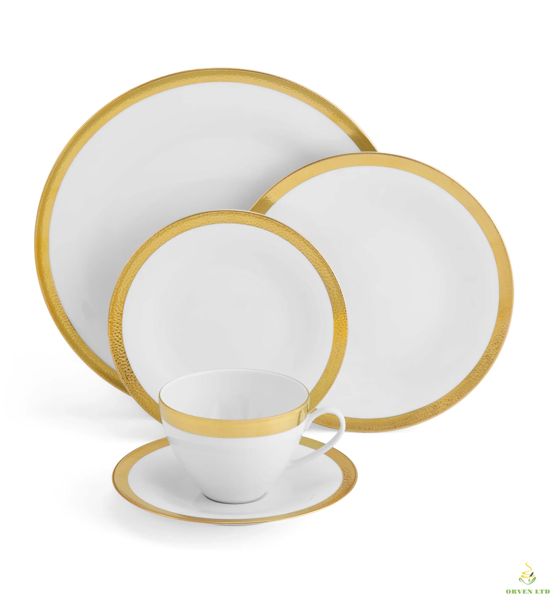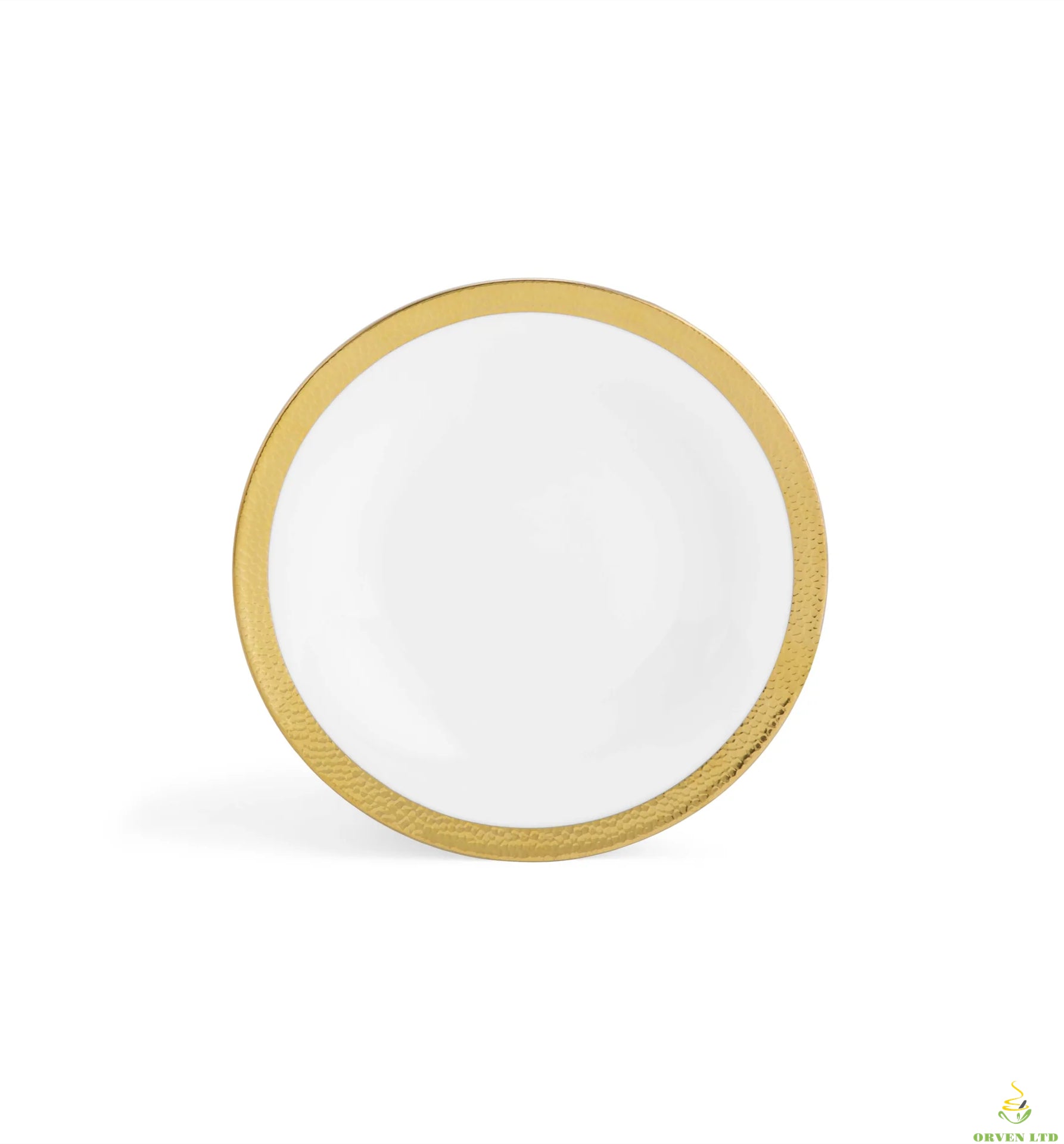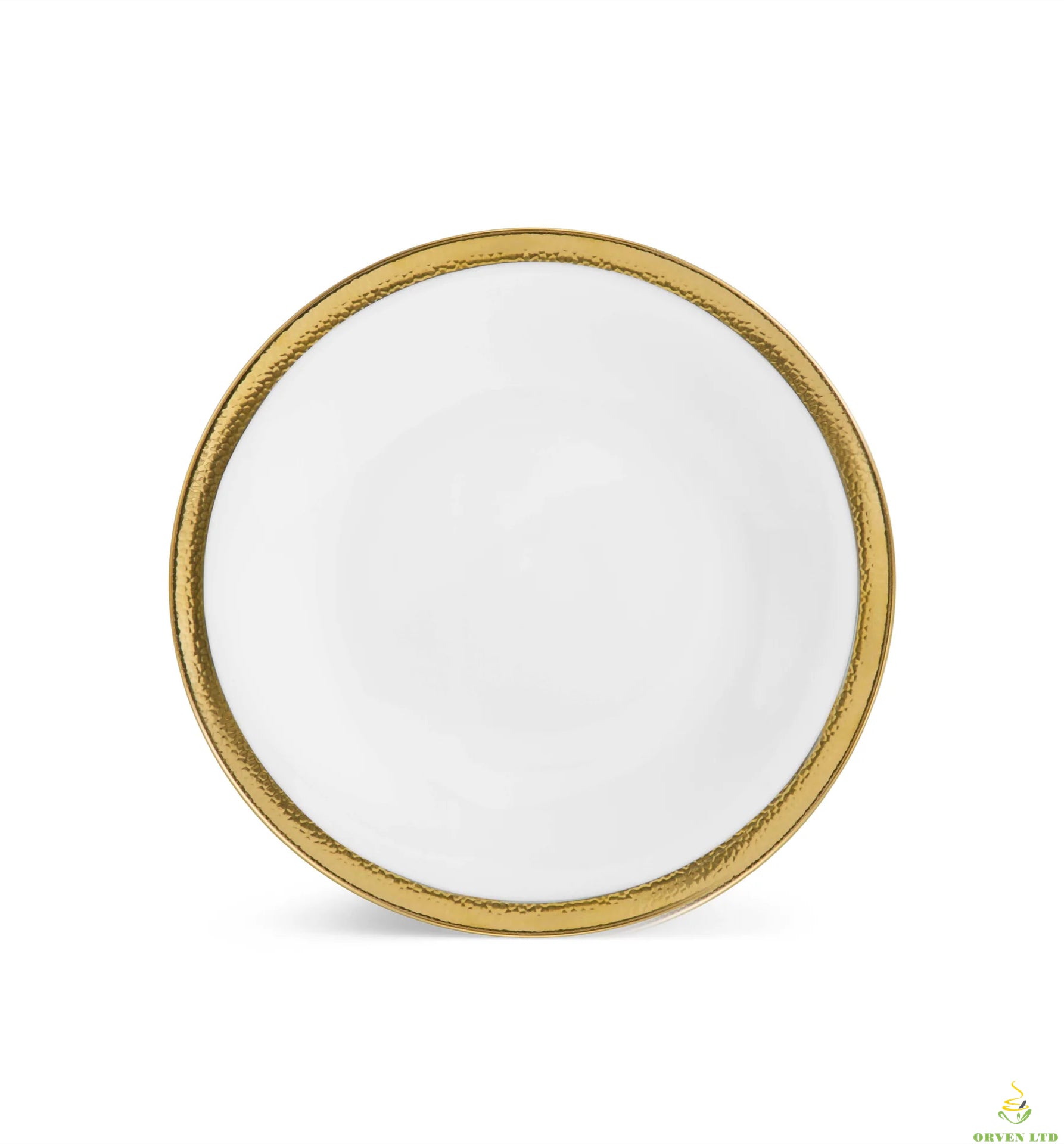 Each piece of tableware is meticulously crafted from exquisite handcrafted porcelain. Its natural texture, inspired by ancient hammering techniques, captures the essence of artisan hammering. Luxurious gold accents add a touch of refinement, elevating every dining experience. Bring unparalleled sophistication and elegance to your table.