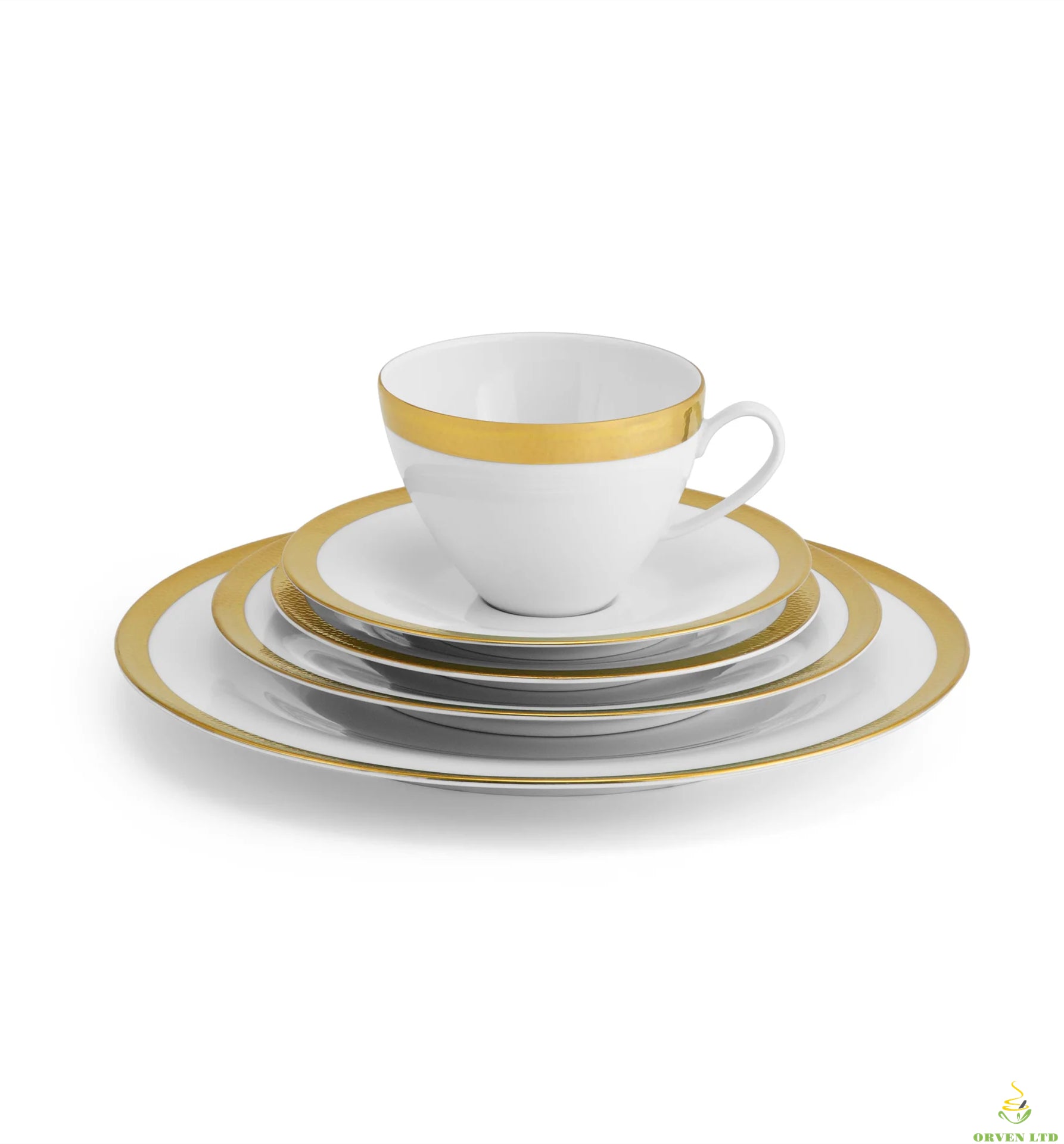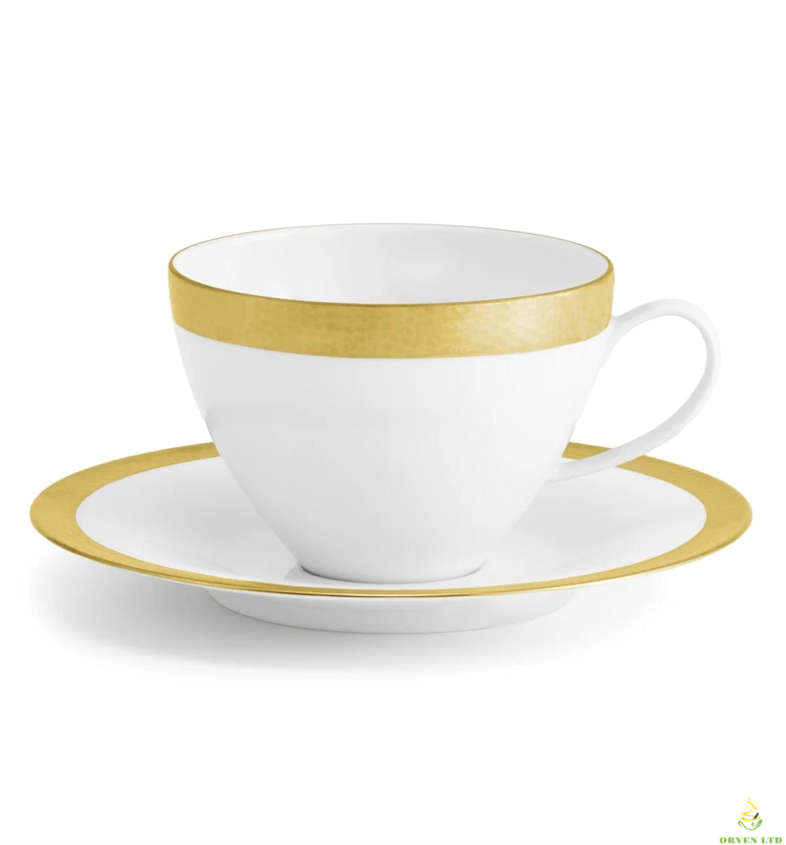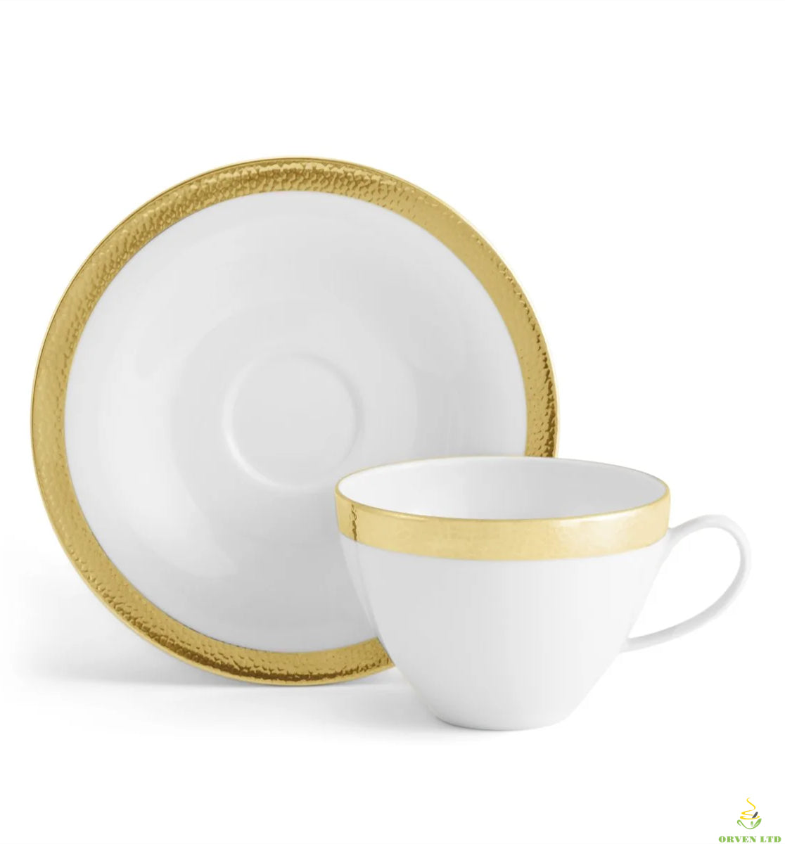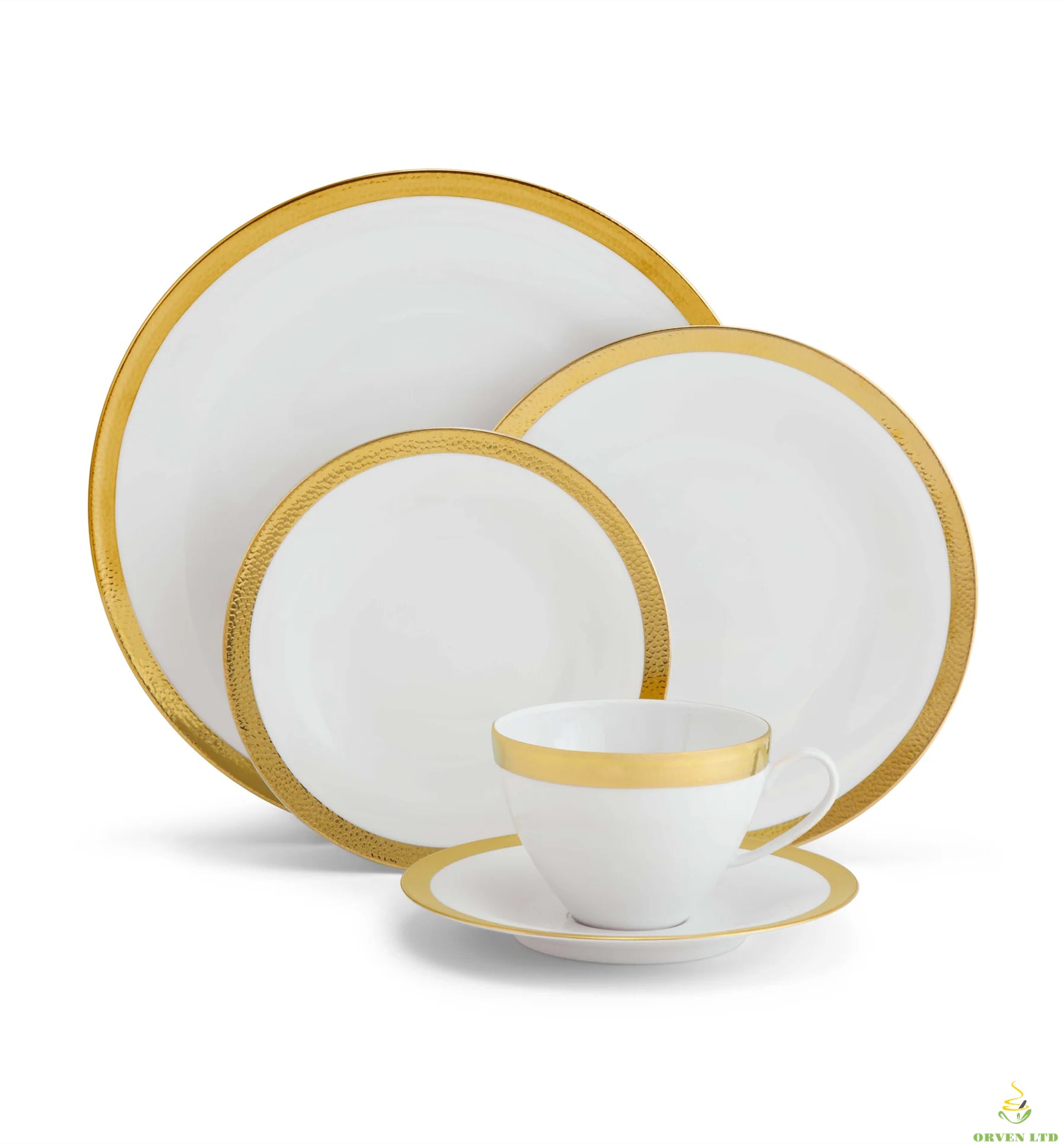 Each piece of tableware is meticulously crafted from exquisite handcrafted porcelain. Its natural texture, inspired by ancient hammering techniques, captures the essence of artisan hammering. Luxurious gold accents add a touch of refinement, elevating every dining experience. Bring unparalleled sophistication and elegance to your table.