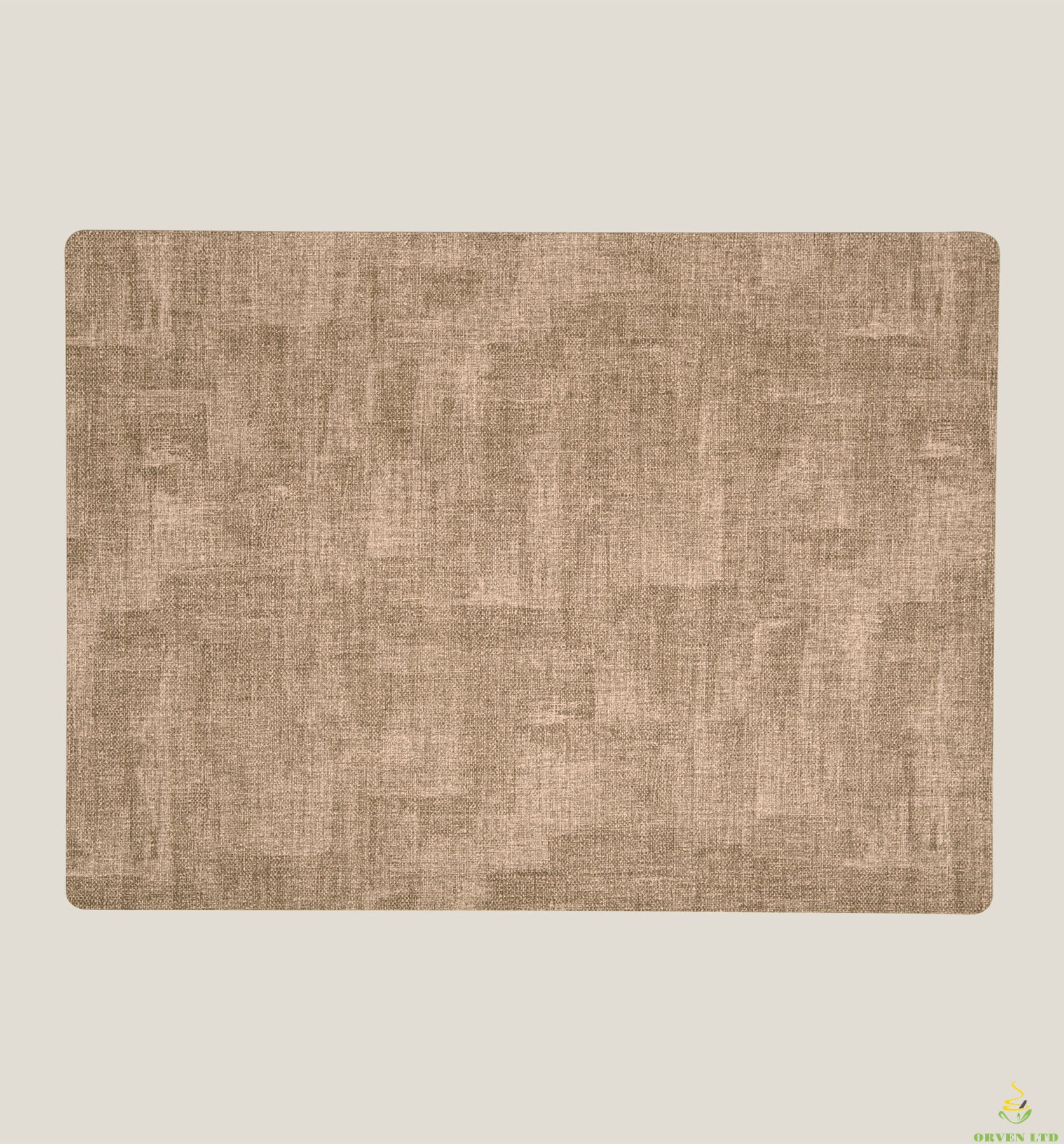 Elevate your dining experience with this tan faux leather placemat. Featuring a refined embossed linen texture with a gradient yarn effect and vintage finish, this rectangular placemat boasts rounded edges for a modern and elegant look, adding a touch of elegance to your table.