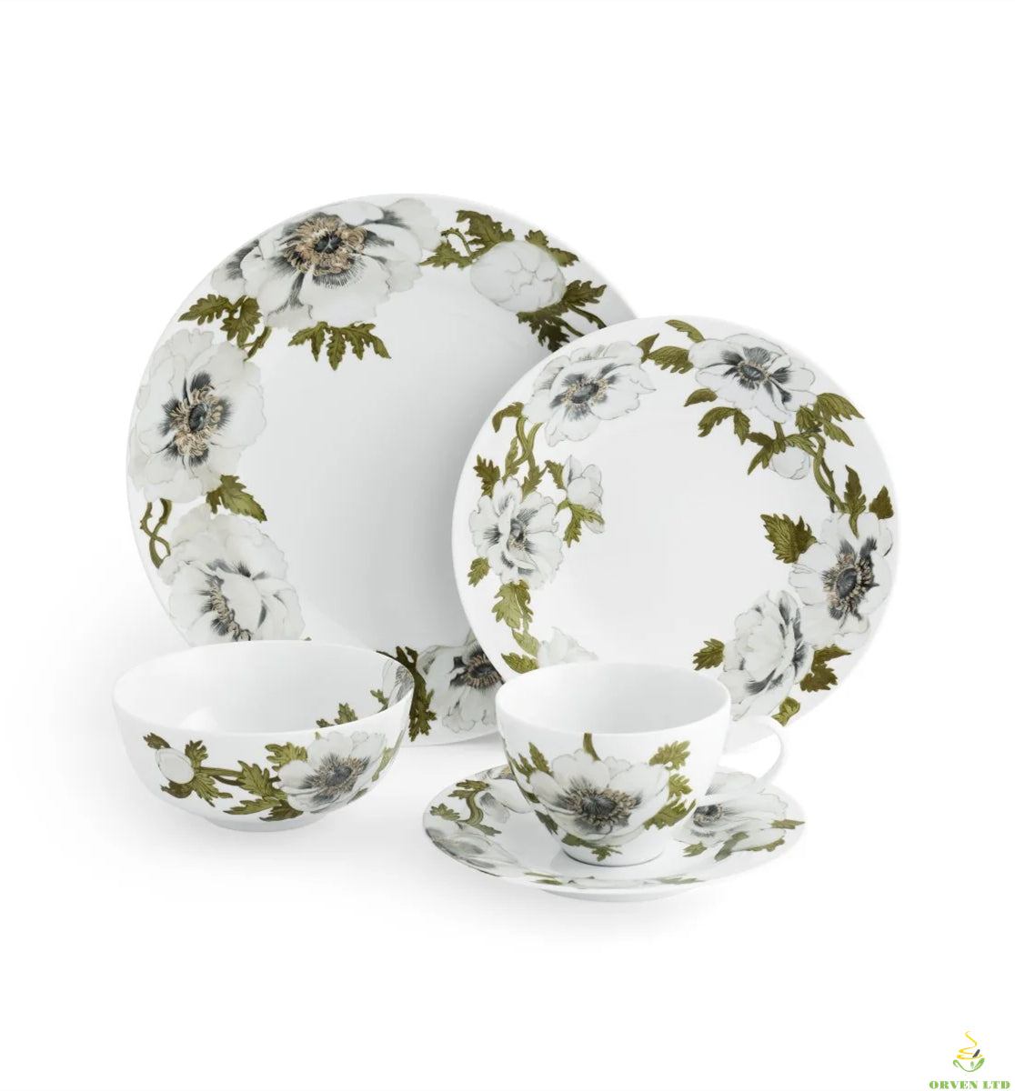 A breath of elegant tranquility. Soft curves and refined silhouettes complement the feminine charm of silver anemones. Handcrafted with a focus on timeless luxury, they bring tranquility and sophistication to the table.